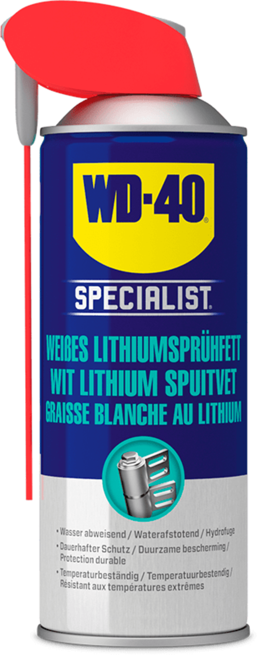 Das WD-40 Specialist Weißes Lithiumsprühfett ist ein dickflüssiges Hochleistungs-Fettspray für eine langanhaltende und zuverlässige Schmierung mechanischer Komponenten. Es kombiniert die einfache Applikation eines Sprays mit der haftstarken Wirkung eines Fettes – es sprüht wie ein Öl und haftet wie ein Fett.