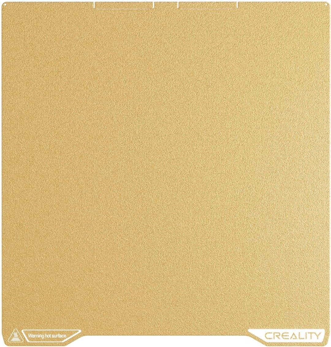Quality control on Creality's part is shockingly bad as always. Mine has some factory worker's fingerprints permanently embedded into the PEI sheet, where they were manually holding the plate. Bed adhesion is fine, but the surface is much grittier than what you would find on a Prusa PEI textured plate. It is also single sided, so don't try printing on the smooth side.