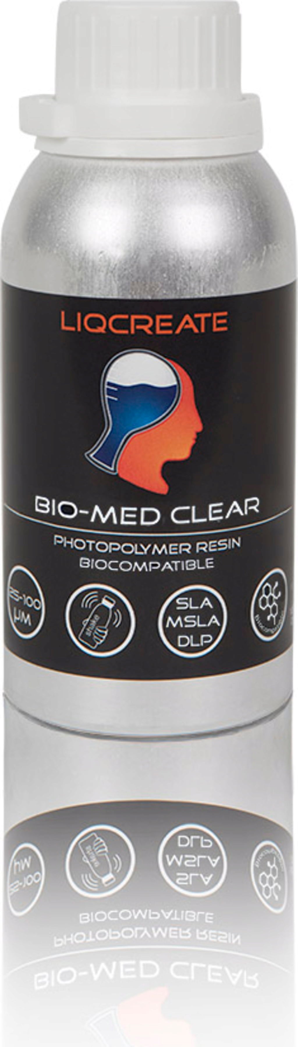 Bio-Med Clear is a hard and clear photopolymer resin for DLP, LCD and laser-based 3D printers.