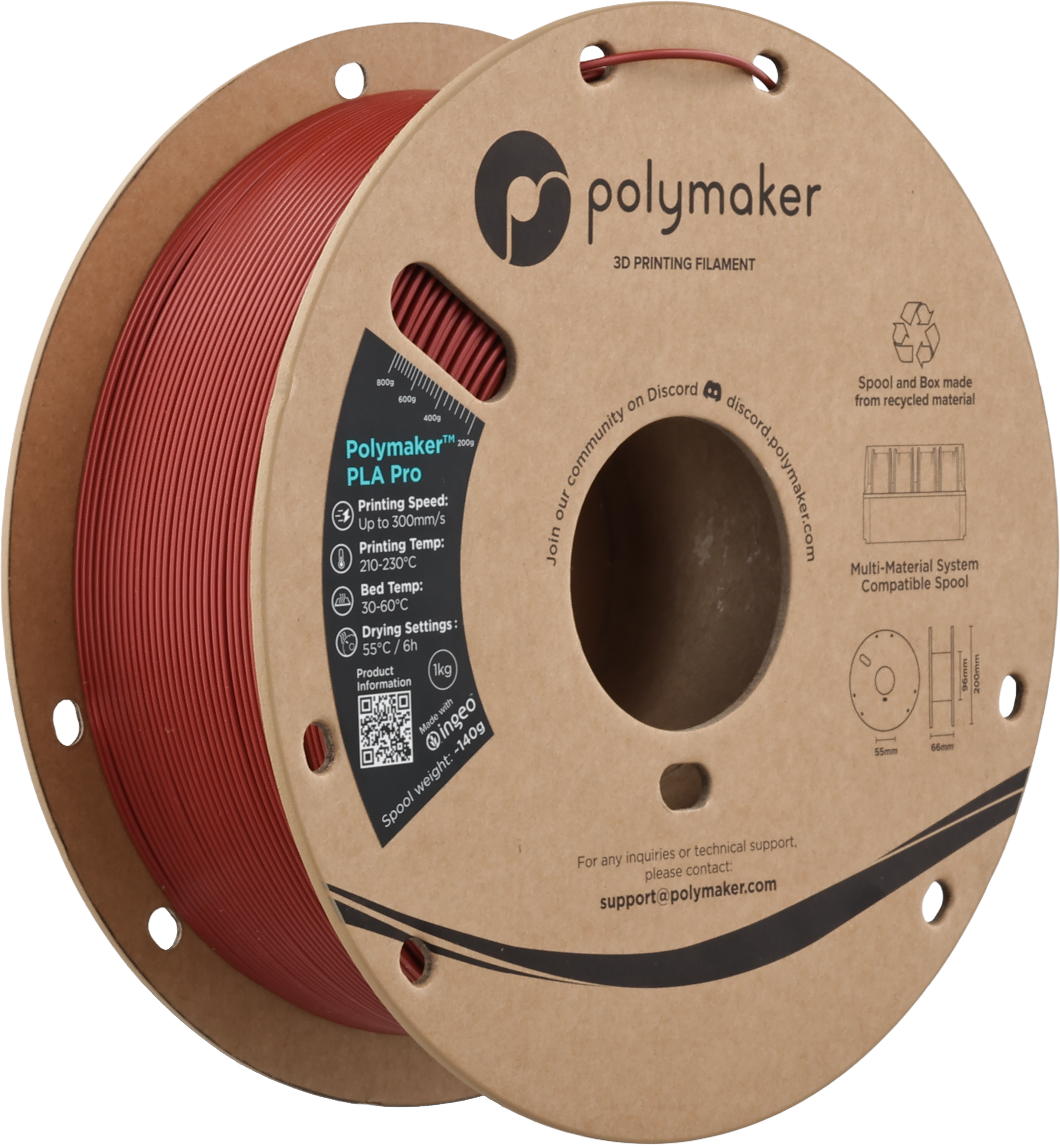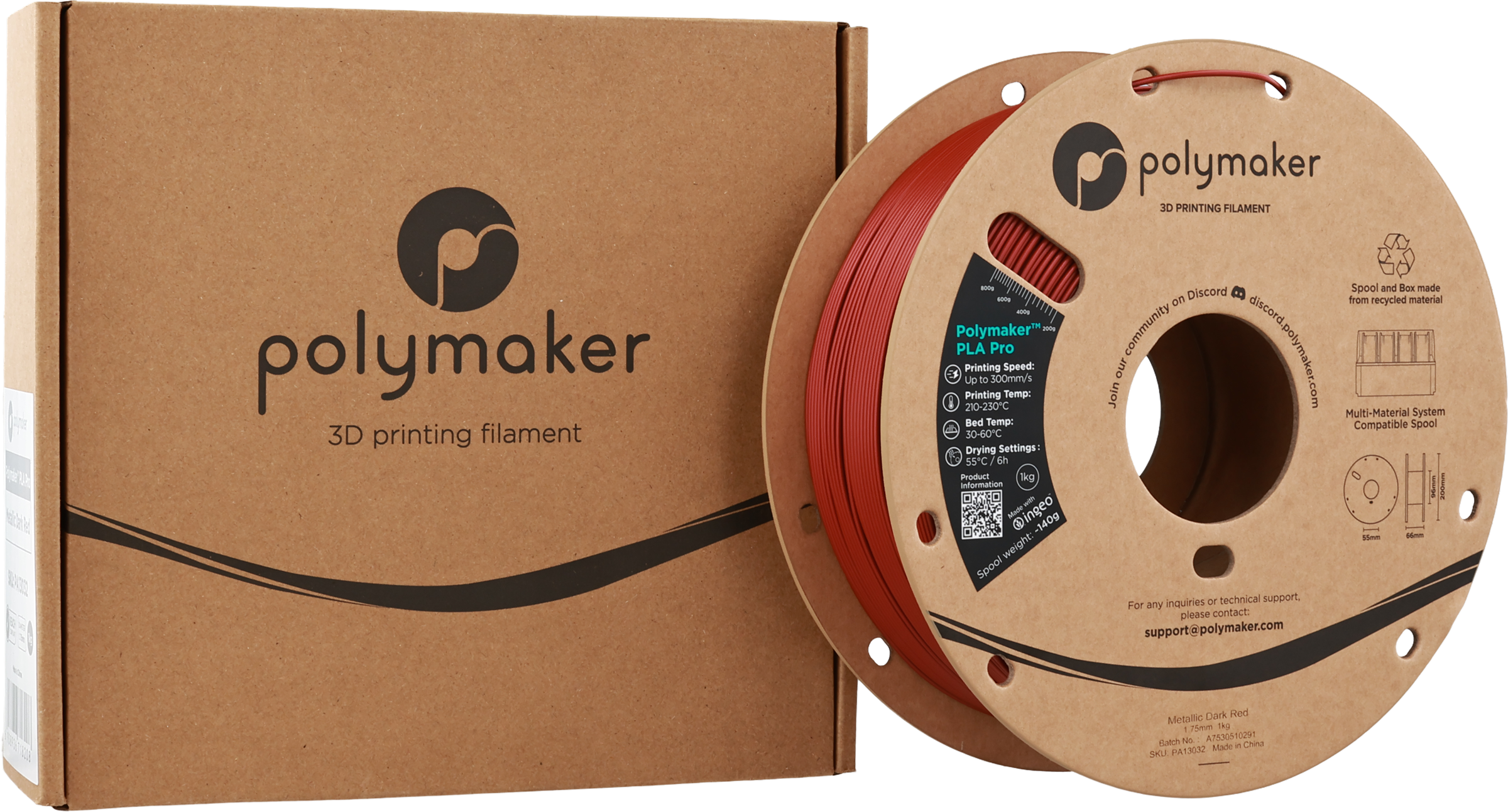 Polymaker PLA Pro Metallic Dark Red, 1.75 mm / 1000 g (1.000 grammi)