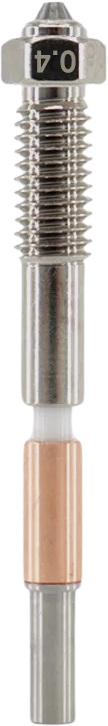 Grazie alla sua robusta struttura bimetallica, abbinata a un inserto in carburo di tungsteno, questo ugello offre un'eccellente resistenza all'usura e alle alte temperature. Questo lo rende particolarmente adatto alla stampa di filamenti abrasivi come fibra di carbonio, fibra di vetro e altri materiali compositi. L'ugello garantisce una distribuzione uniforme del calore, garantendo risultati di stampa precisi e costanti.