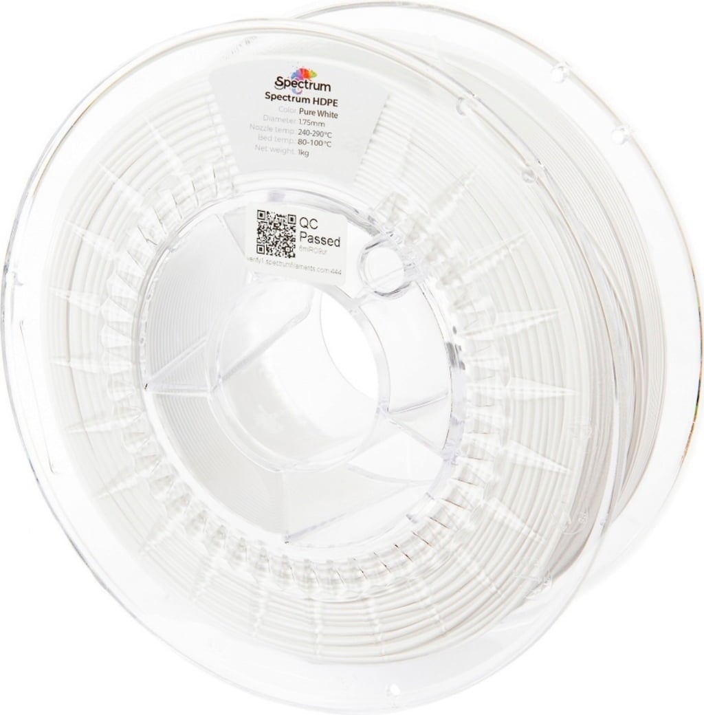 Spectrum HDPE è uno dei primi filamenti HDPE al mondo con una formulazione innovativa a bassa deformazione. Il polietilene ad alta densità è tradizionalmente considerato difficile da stampare, ma Spectrum ha ripensato completamente il materiale. Il risultato è un filamento tecnico ad alte prestazioni, estremamente resistente, stabile dal punto di vista chimico e sorprendentemente semplice da lavorare.